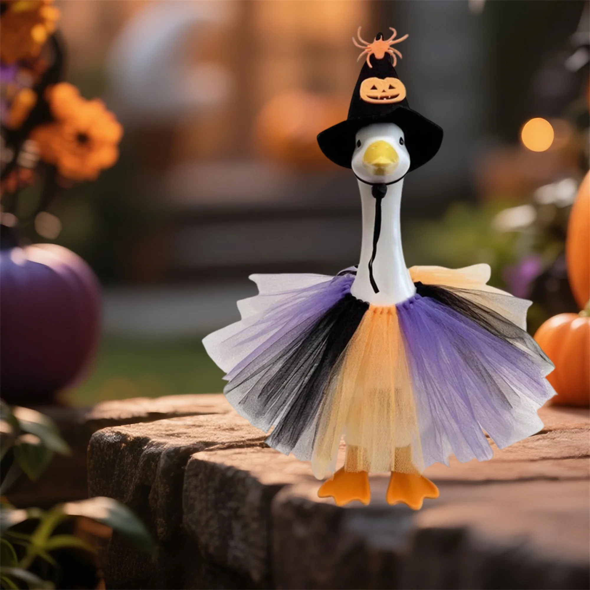 Add some fun and flair to your garden decoration with our porch goose Halloween outfit!