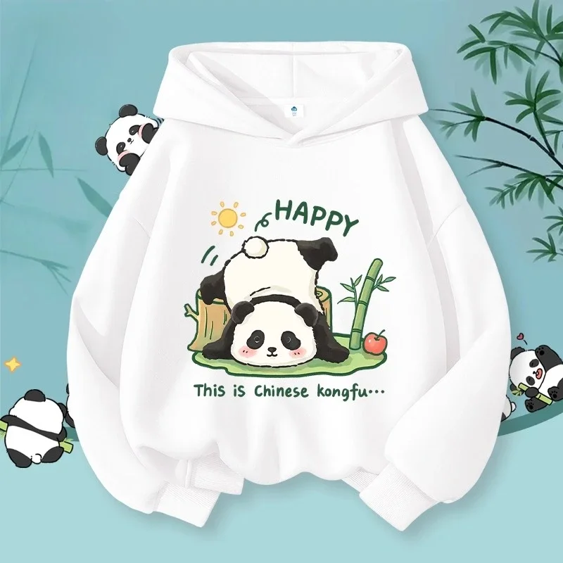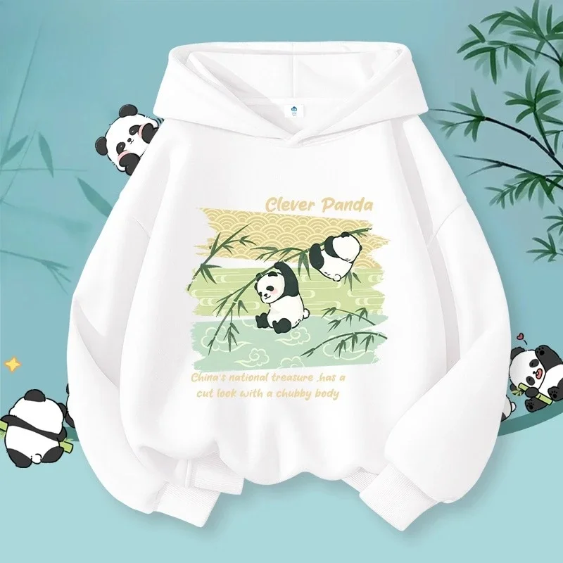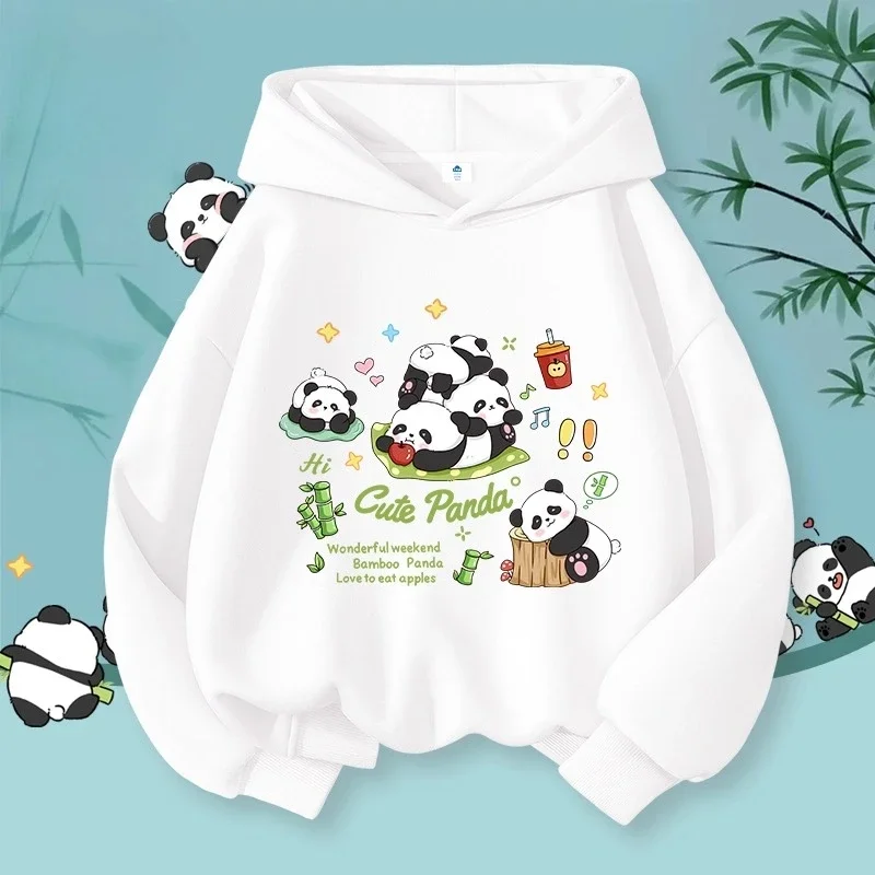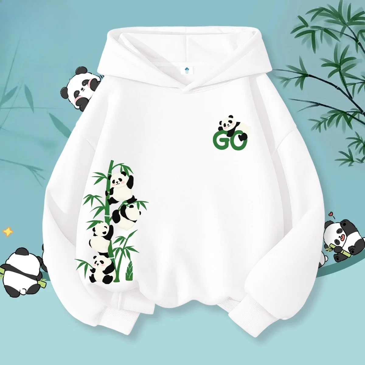 Cute Panda Playing Print Children's Sweatshirt Autumn Boys and Girls Casual Fashion Warm Hooded Pullover