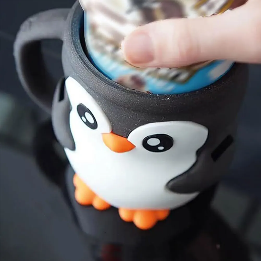 3D Print Penguin Ice Cream Sleeve Leak Proof Cup Holder Spoon Slot Secret Snack Drawer