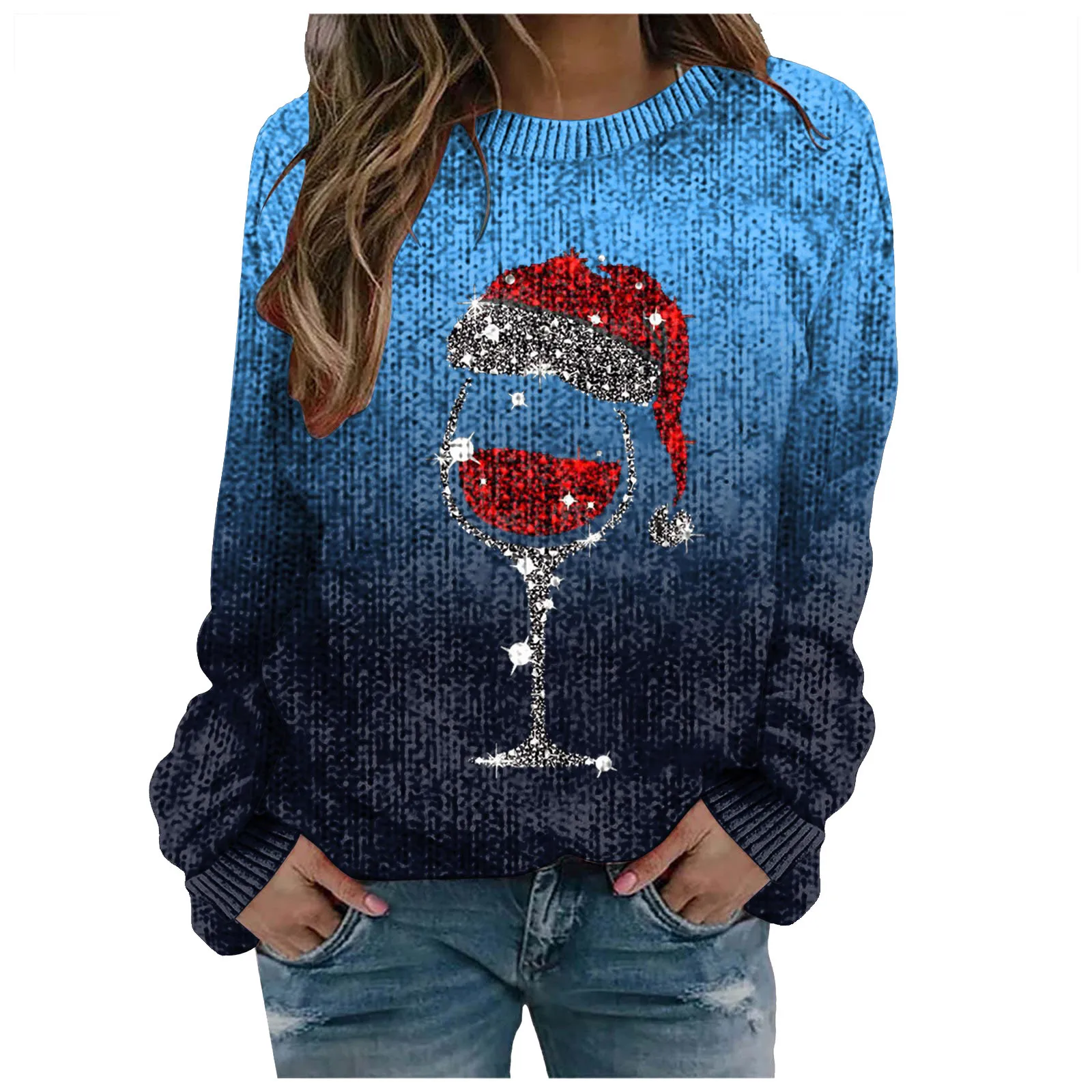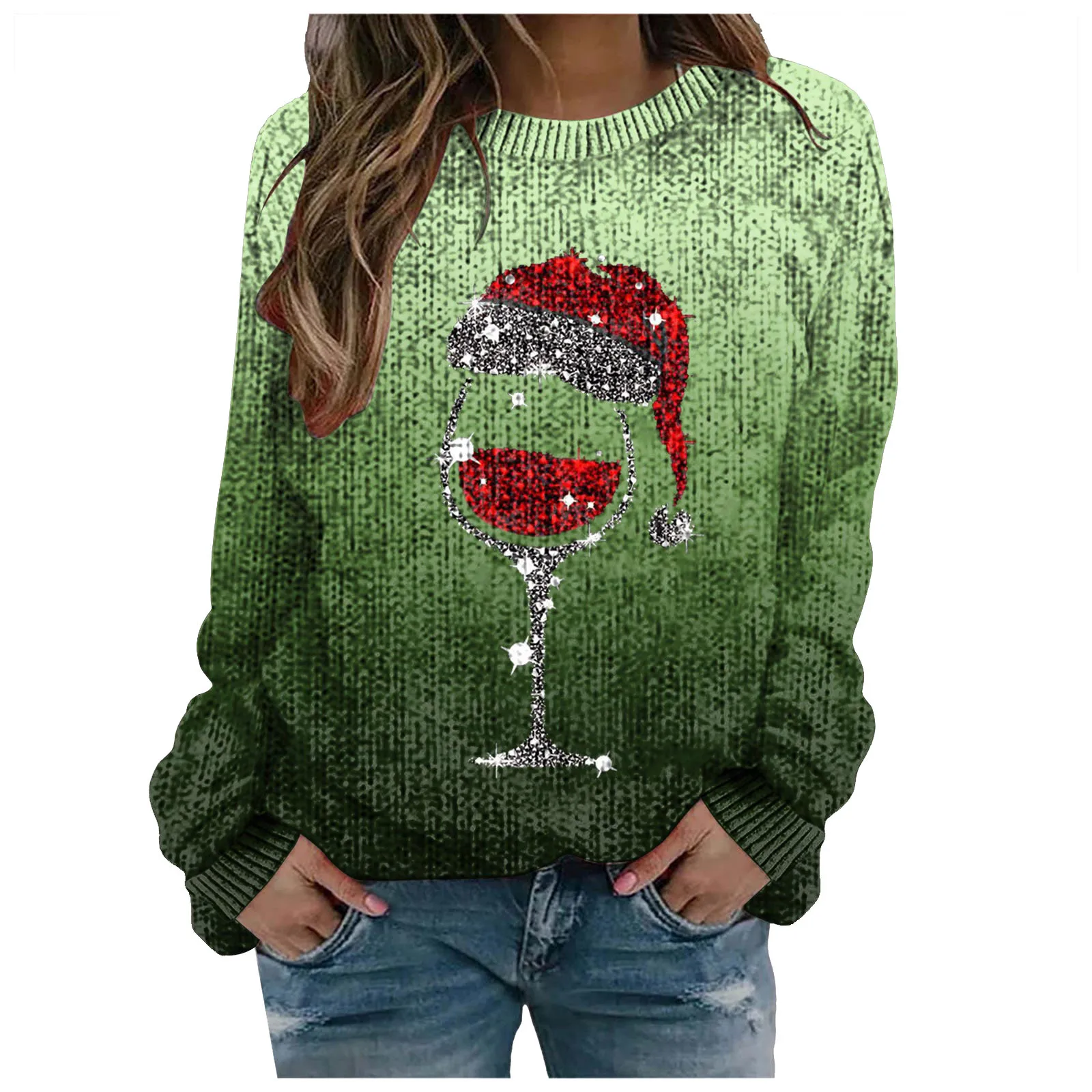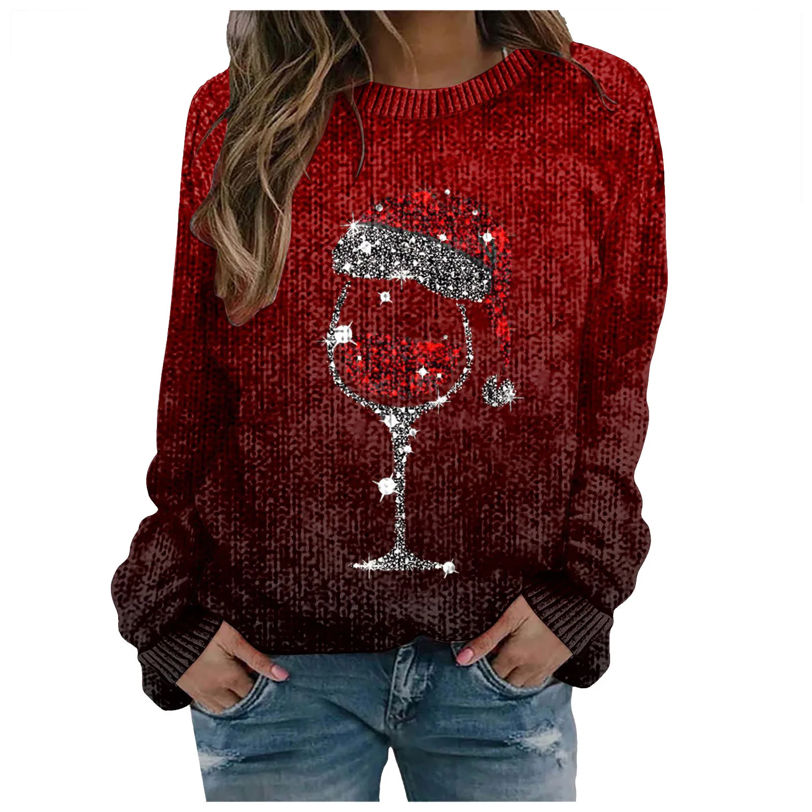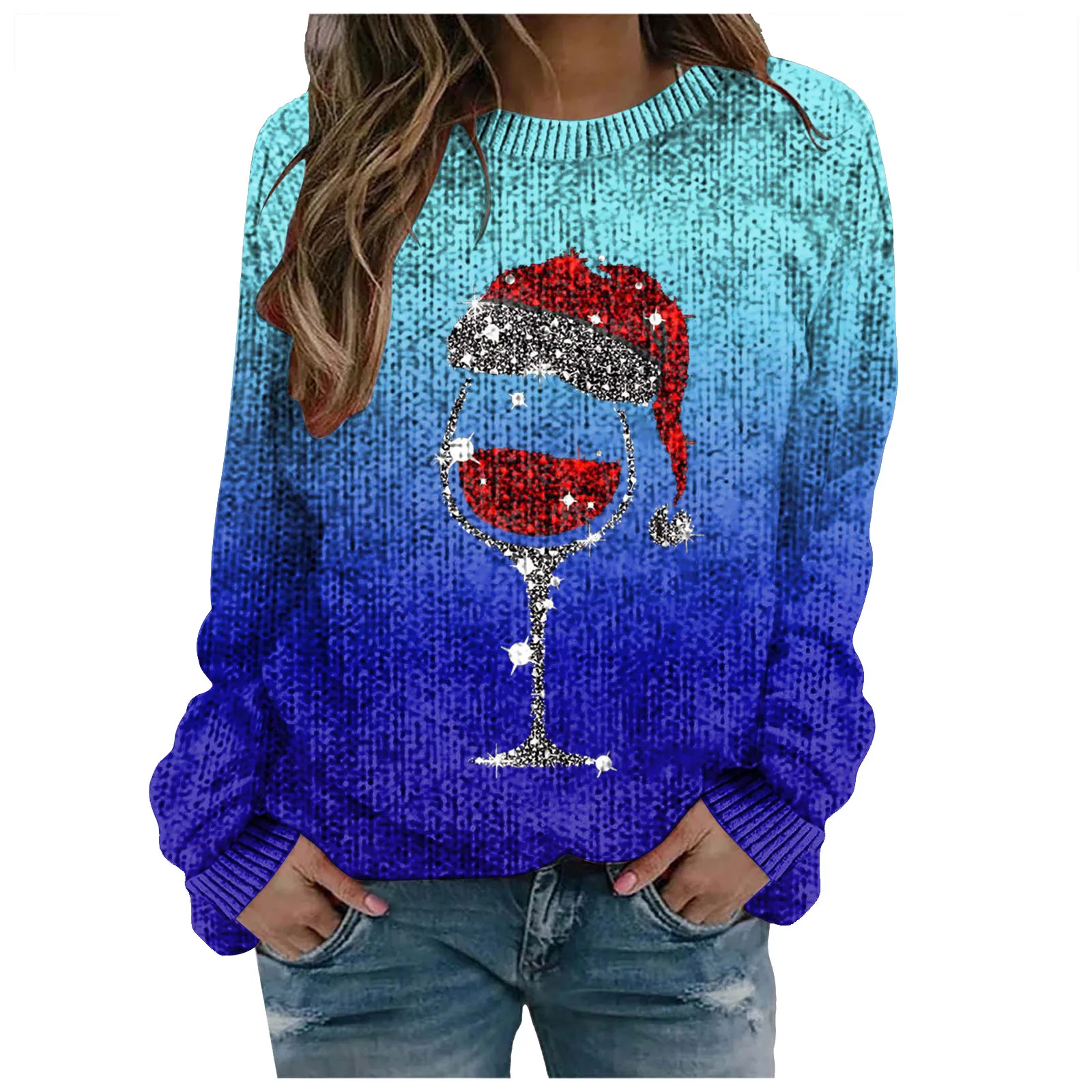 Women Autumn And Winter Casual Fashion Thick Needle Round Neck Sweater Christmas Printed Long Sleeve Hoodless Sweater