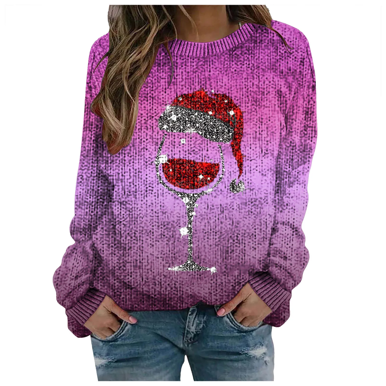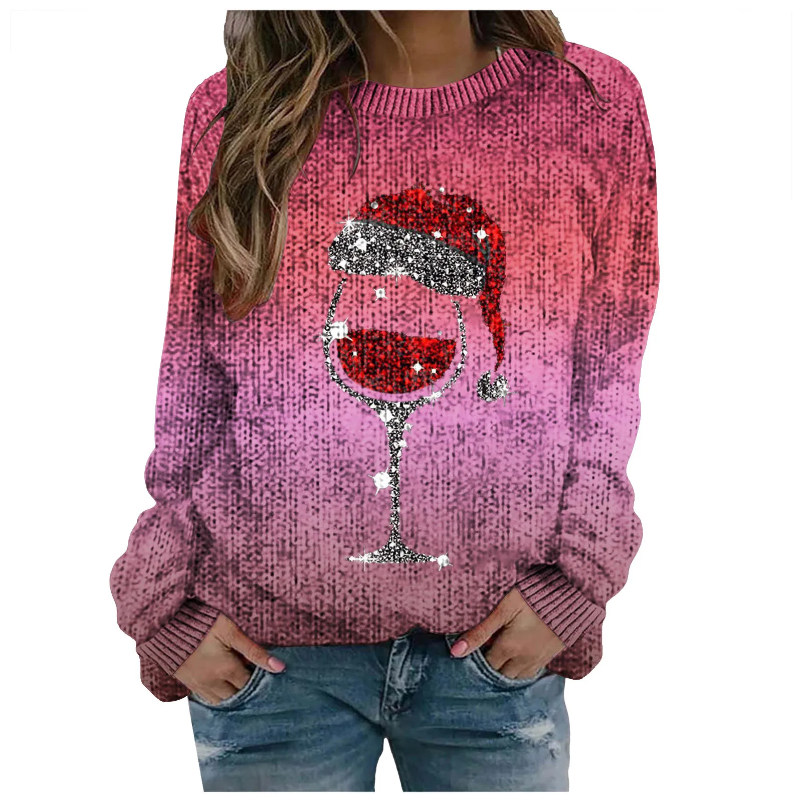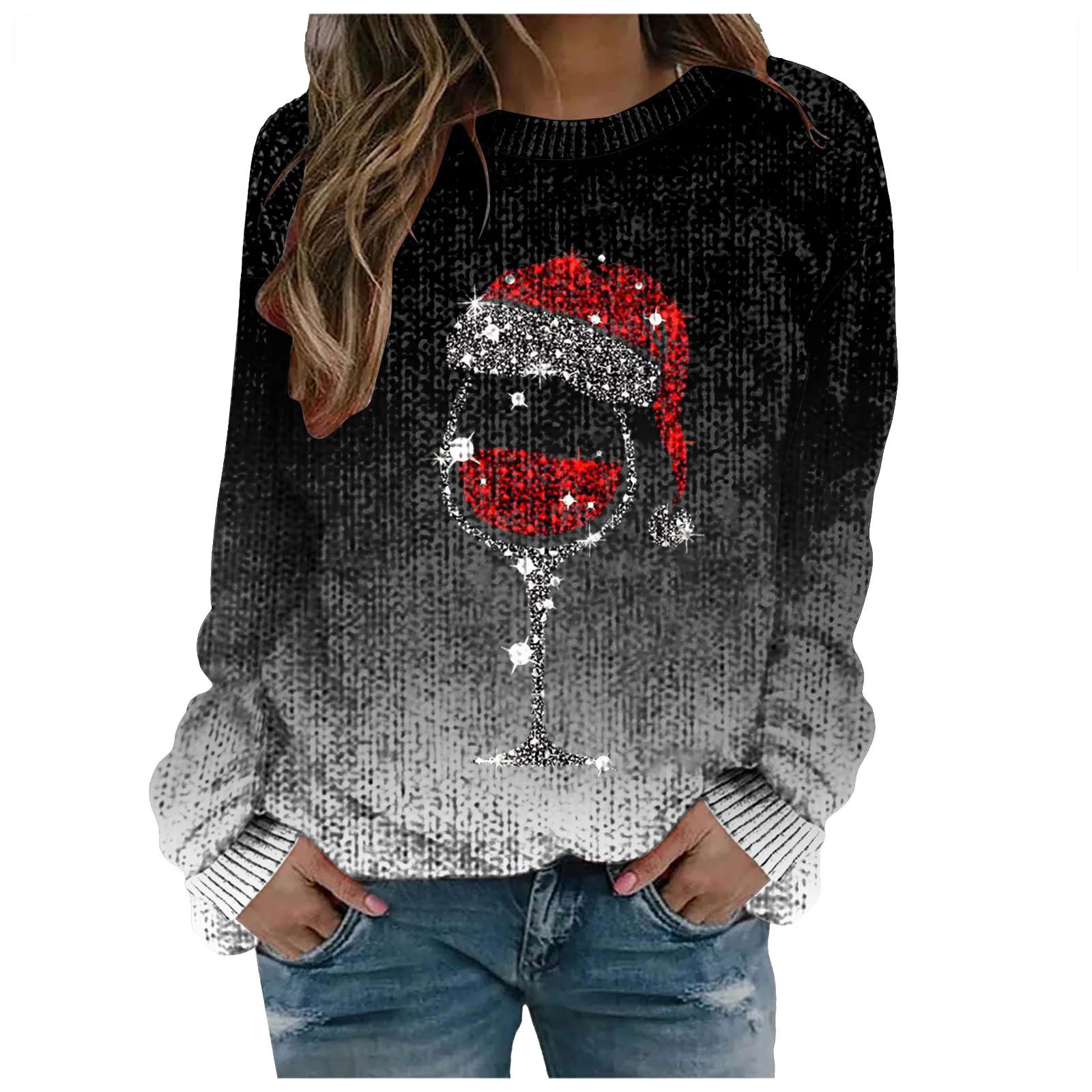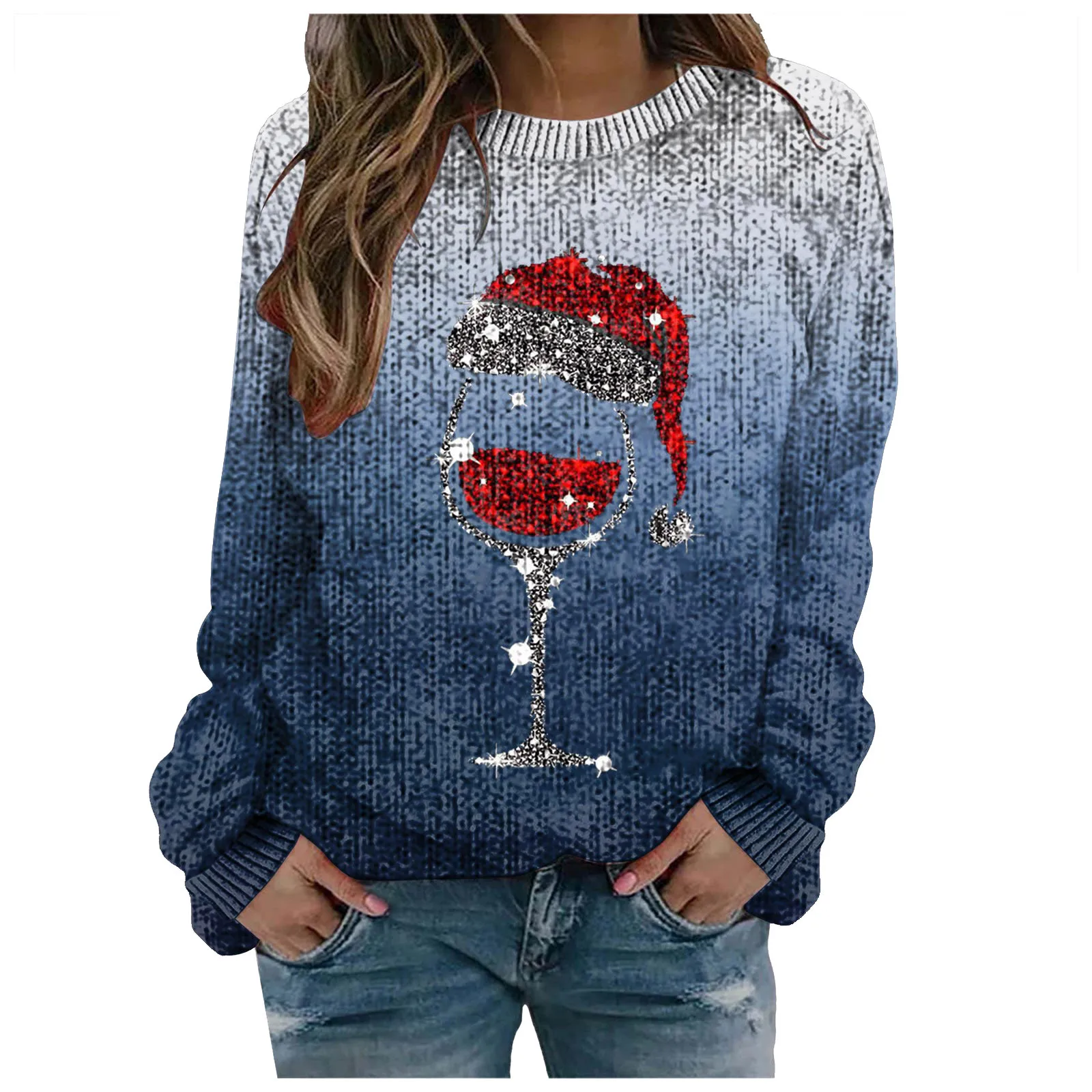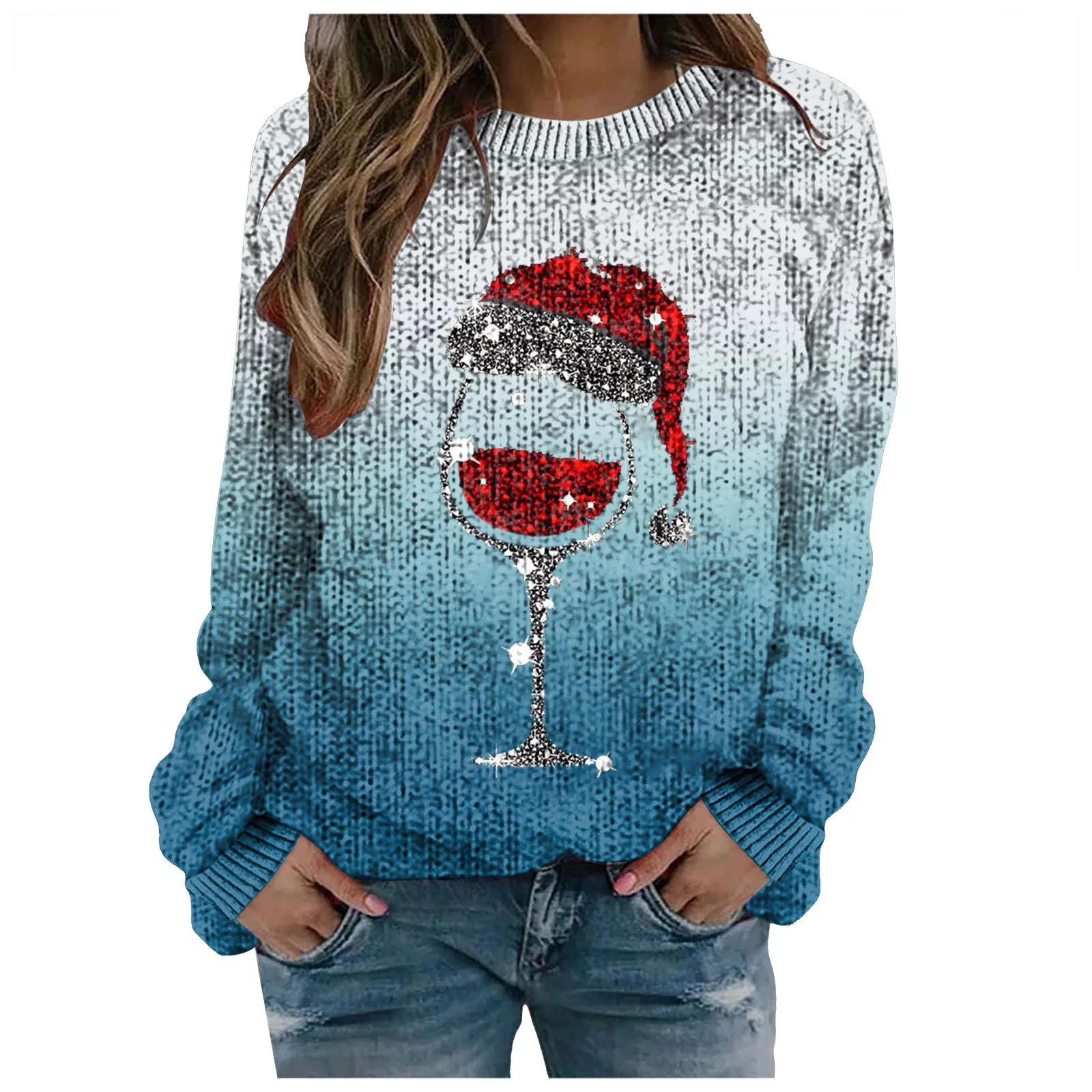 Women Autumn And Winter Casual Fashion Thick Needle Round Neck Sweater Christmas Printed Long Sleeve Hoodless Sweater