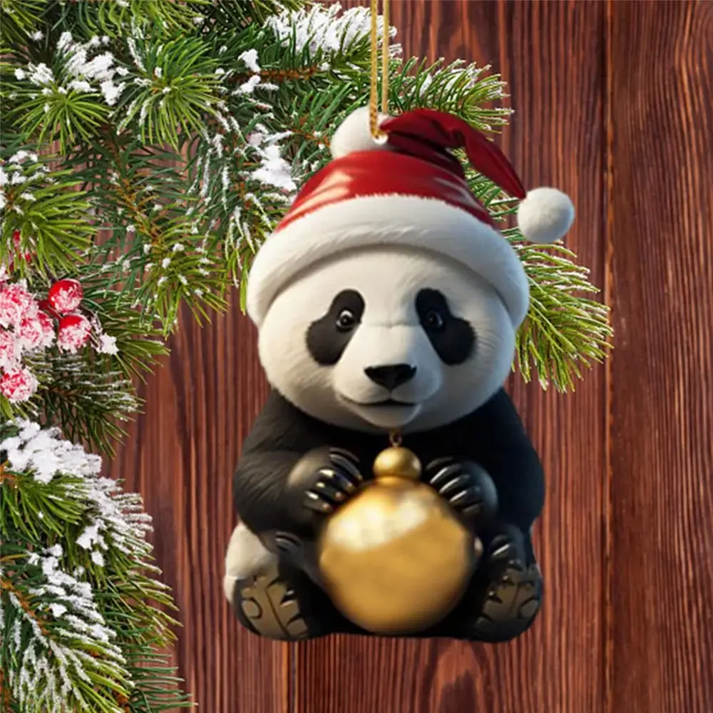 New Acrylic Panda Pendant Christmas Panda Doll with creative balls Ornaments Xmas Tree Animal hanging Decors Keychain Gift